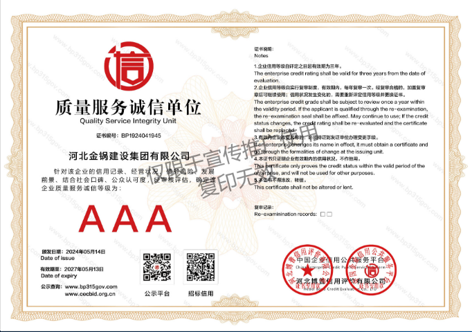 質(zhì)量服務(wù)AAA級(jí)誠信單位證書